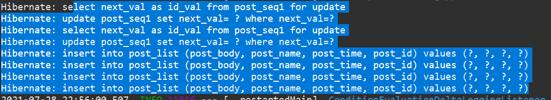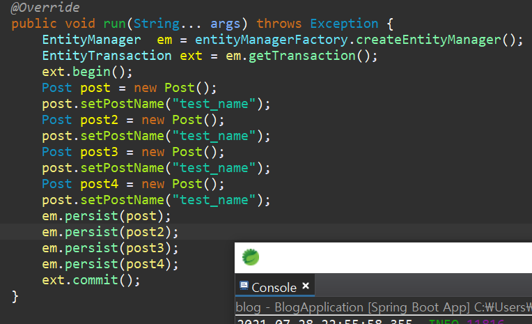 구동 시점에, 총 4개의 post를 persist한다고 가정해보자,