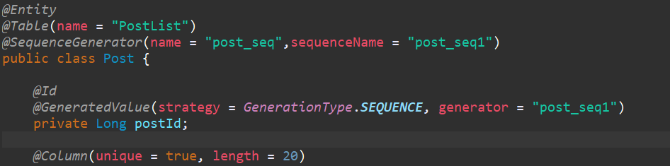 해당 Entity 에 시퀀스 생성자를 설정할수도 있다.