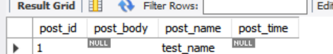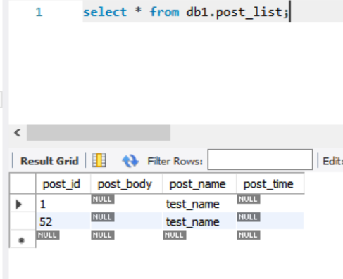 이런식으로 post_name만 생성했는데, post_id 가 자동으로 1로 들어가게 된다.
