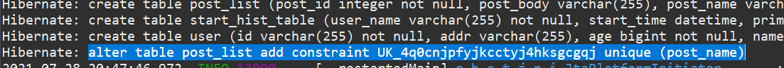 현재는 테이블이 없어서, 한번 create ddl이 나갔고, 그 이후에는 재 기동 에도 create ddl이 나가지 않는다.