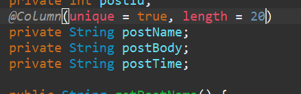 이런식으로 별도 컬럼의 제약조건을 true로 주고, 해당 컬럼에 대한 길이를 20으로