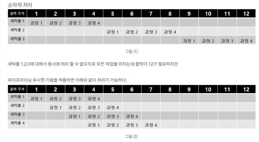 모든단계는 동작속도대로 일을 하면서 처리량을 늘린다.