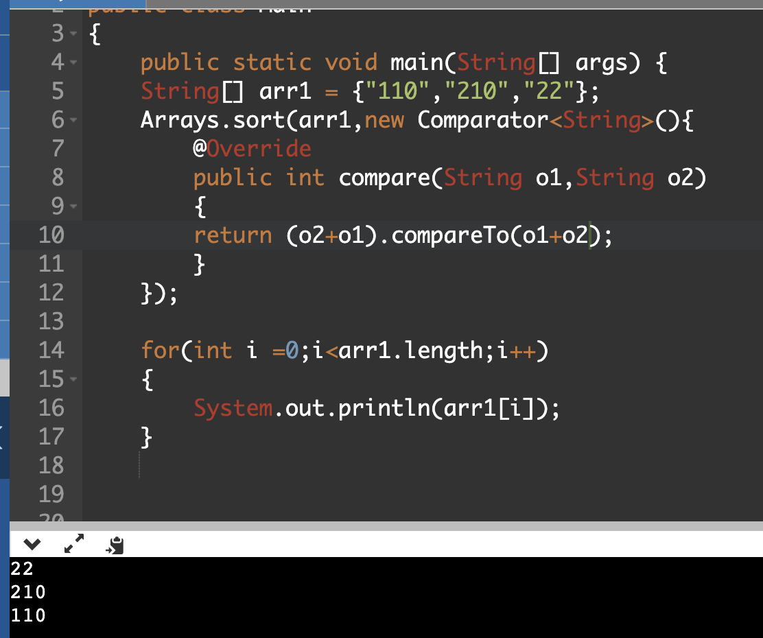 reverseOrder나, 단순 오름차순이 아닌, 문자열 두개를 합친것에 대한 compareTo이 되게 끔 해주면 된다.