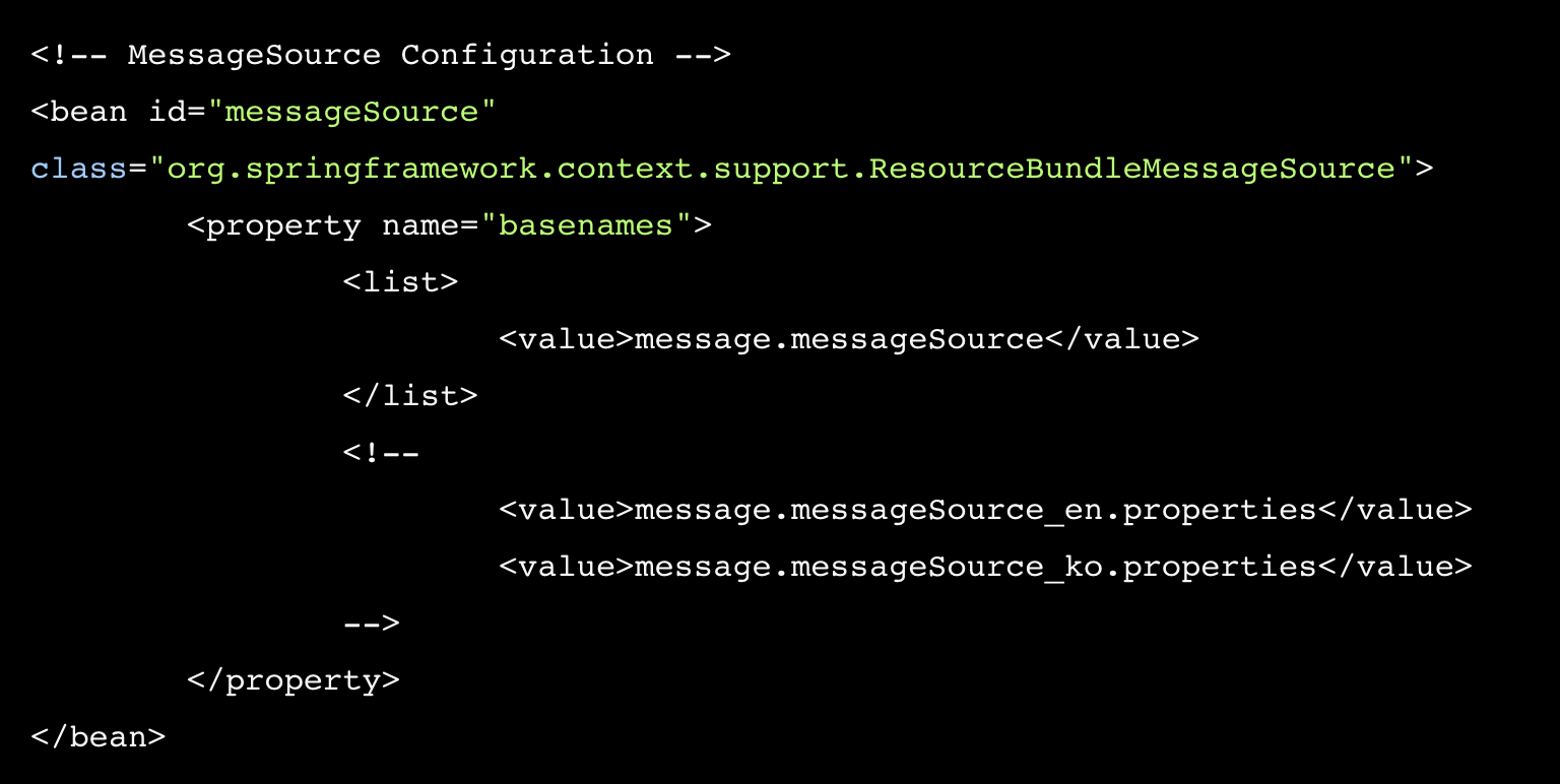이렇게 basenames라는 이름으로, message.messageSource로 하게되면, 기본 이름이 된다.