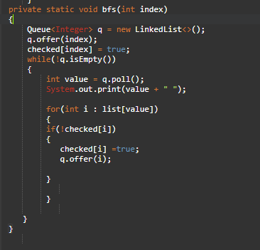 dfs에서는 만약에 들어온 값이 cheked index에 true라면 return 아니라면 true 해주고, 해당 index의 add시킨값을 배열로 돌려준다. 다음 목적지가 어디인지?