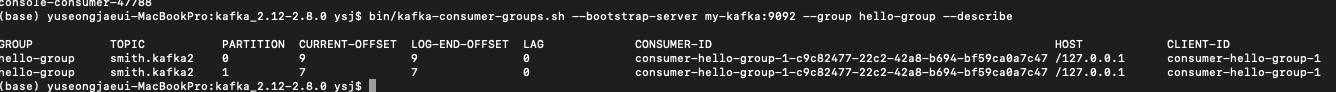 bin/kafka-consumer-groups.sh --bootstrap-server my-kafka:9092 --group hello-group --describe