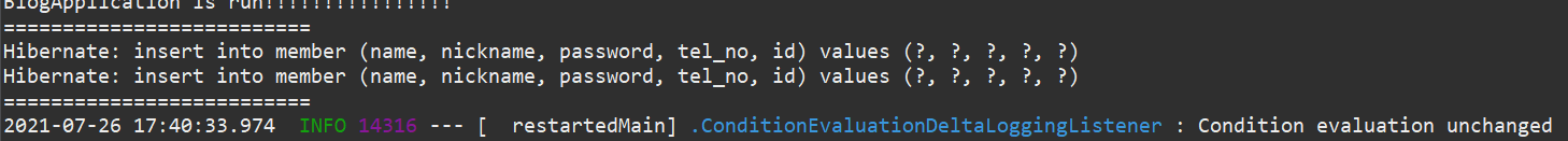 persist 이후, commit 전에, em.flush를 하게되면, 이렇게 =====전에 쿼리가 발생하게 된다.